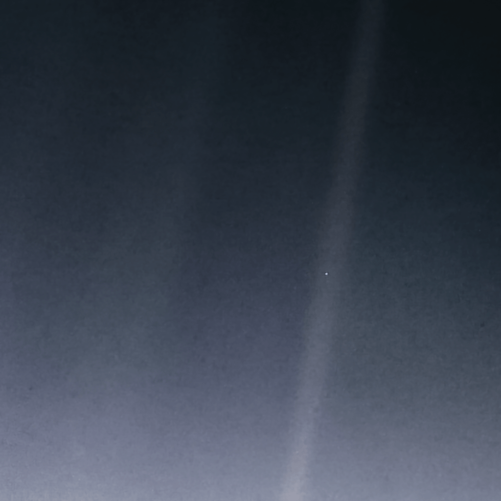 The small blue dot was all that was visible of Earth from past Neptune, 6 billion kilometres away. Earth is just a spec of rock, not even visible from the edge of our solar system and beyond where the Voyager spacecraft are today. We are just a spec of dust on this barely visible rock.